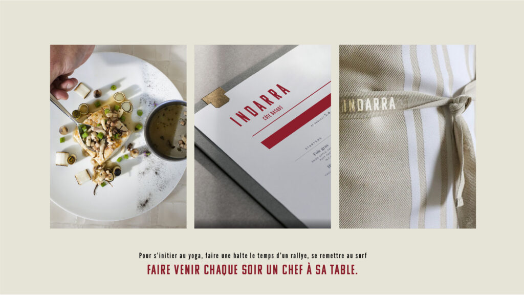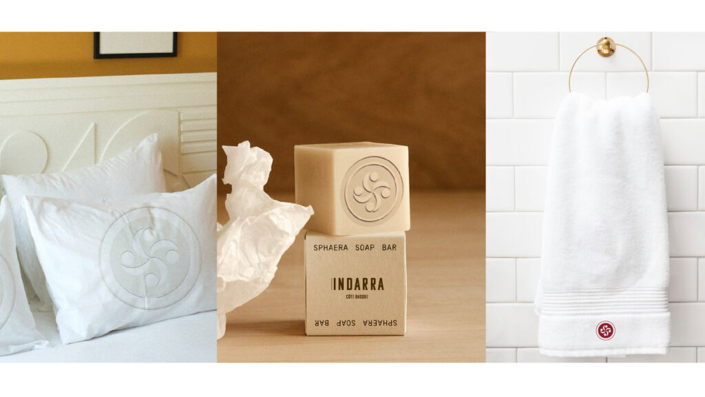 Indarra côté basque. Création de l’identité et du territoire pour l’Hôtel basque Indarra, inspiré de l’univers et des codes de la région. Agence Terre de Sienne